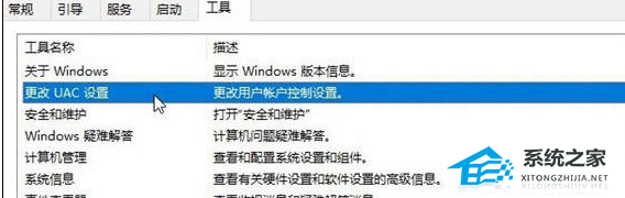 2. 点击 工具 选卡,在下面选中更改UAC设置 ,然后点击启动按钮。