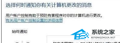 3. 打开用户账户控制,修改为如下图状态,点击确定保存设置。