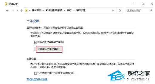 4. 然后点击右侧中的“还原默认字体设置”就可以了。
