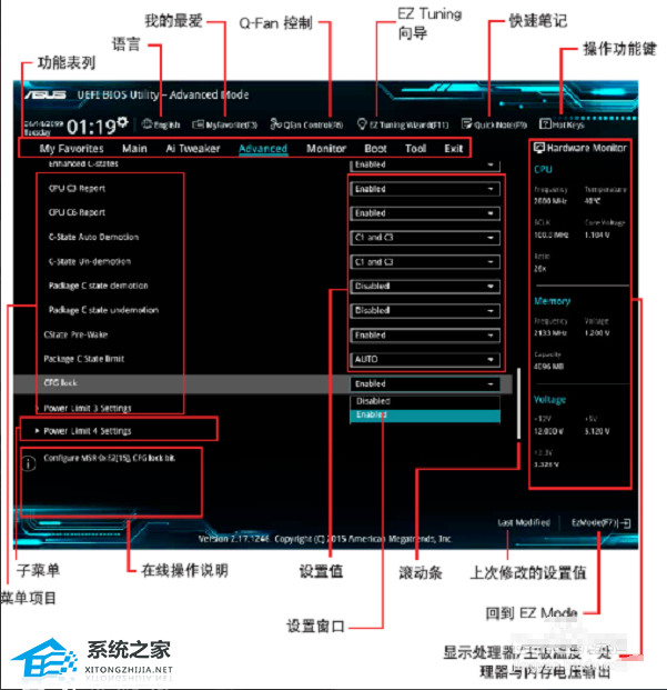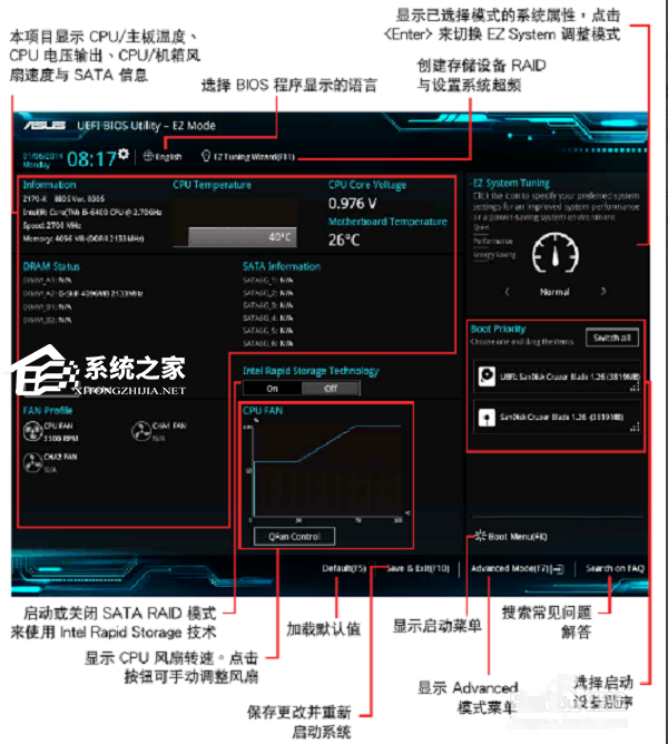 两种模式的主界面菜单介绍,详情如下图所示,图一为EZ模式,图二为高级模式。