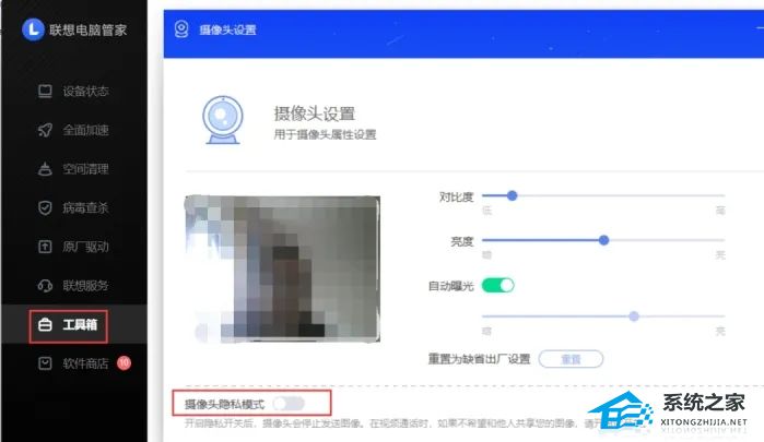 联想电脑预装的联想电脑管家,工具箱,摄像头设置下可以设置隐私模式禁用摄像头,也需要关闭,摄像头才可以使用。