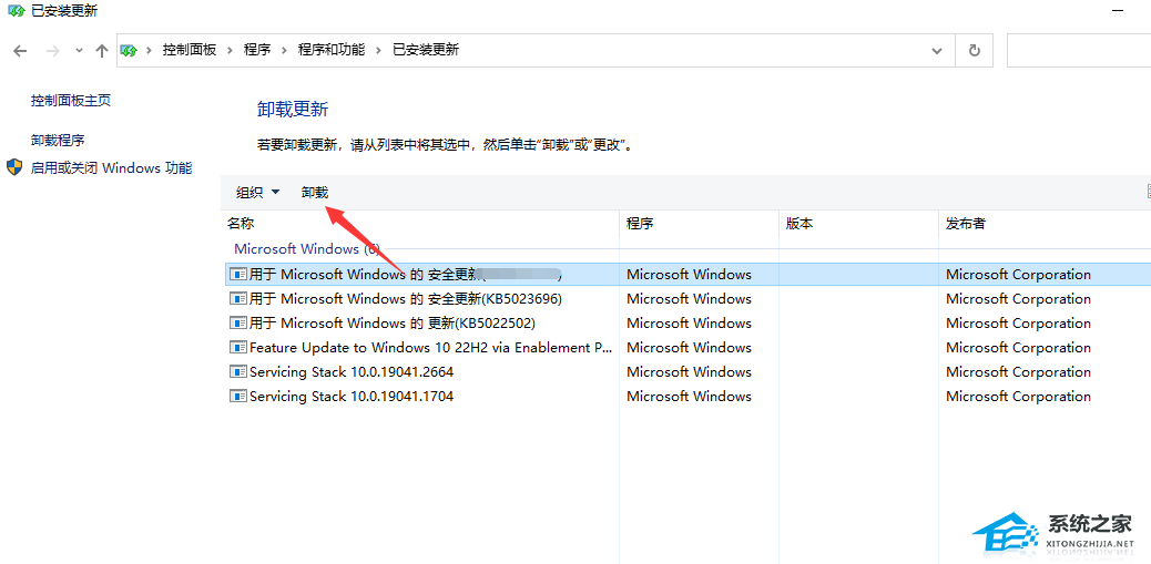 打开控制面板,依次点击“程序”---“程序和功能”---左上角“查看已经安装的更新”,找到关键字“KB5023706”右击卸载更新。