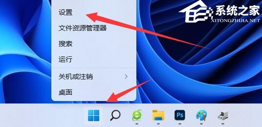 2. 右键开始菜单打开“设置”。