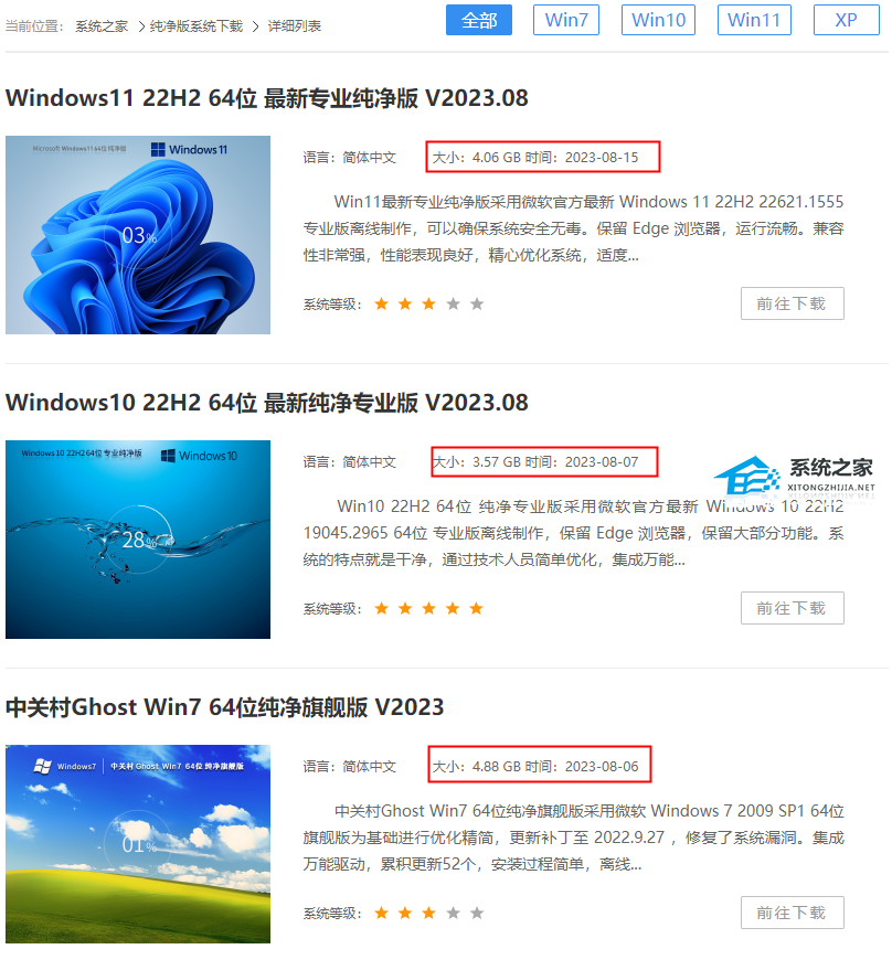 可以看到,纯净版的系统包是比较小的,所以你可以相信,它们是比较干净的。系统之家的系统很适合办公室电脑安装,快速一装直接简单,就算你没有电脑知识也可以装。