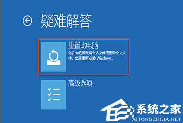 3. 在“故障排除”屏幕中选择重置此电脑。