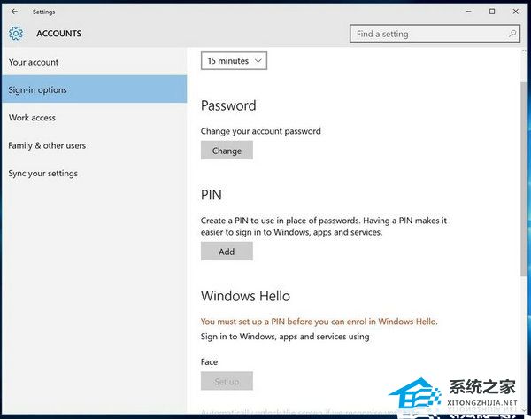 2. 您必须先设置PIN码,然后才能使用Windows Hello,单击PIN下的Add按钮进行设置,完成此操作后,设置Windows Hello的选项将解锁。