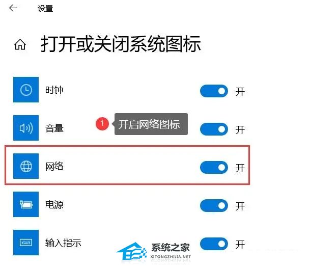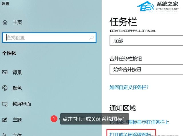 步骤2:选择【打开或关闭系统图标】,打开网络图标。