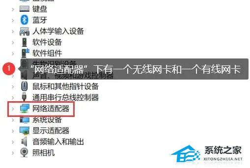 步骤3:在【网络适配器】下面就可以看到网卡,如果网卡没有黄色感叹号,则表示网卡驱动程序已安装(如果有黄色感叹号则需要安装网卡驱动程序)。之后就可以选择电脑右下角的网络图标选择要连接的wifi。