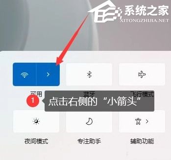 步骤1:鼠标左键桌面右下角任务栏的网络图标,找到wifi图标左侧的小箭头。