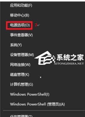 7. 开机进入windows 10系统后,鼠标右键点击电脑左下角windows图标,选择[电源选项],如下图所示:
