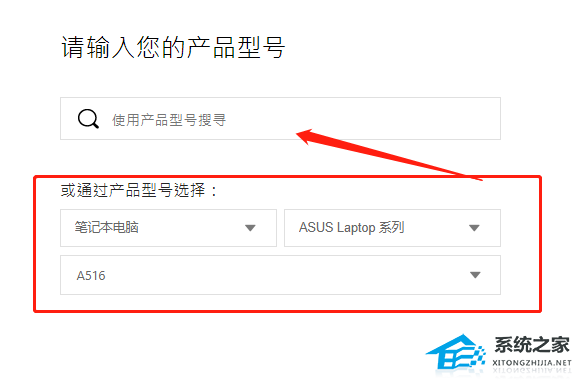 2. 然后在页面上输入自己电脑的型号,或者直接根据分类选择。