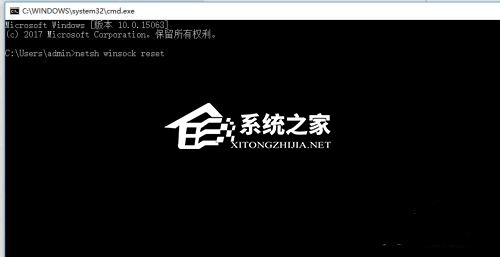5. 输入netsh winsock reset回车,完成操作后重启电脑即可全部搞定了。