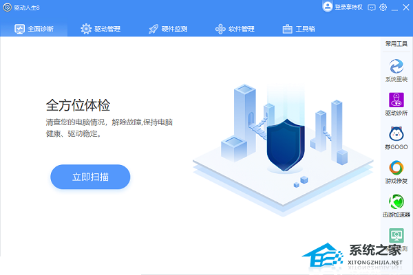 2. 在【驱动管理】处点击【立即扫描】,“驱动人生8”将对你的电脑进行扫描检测,显示出驱动正常或异常的状态。