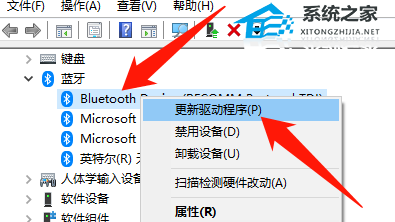 4. 鼠标右键【Bluetooth】,点击【更新驱动程序(P)】。