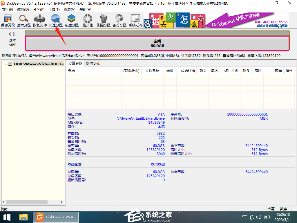 2. 点击“快速分区”。