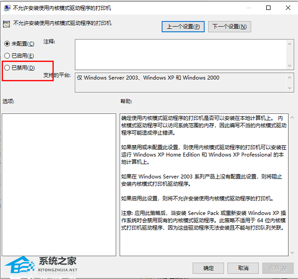 3. 在打开的窗口界面中,将“已禁用”勾选上。