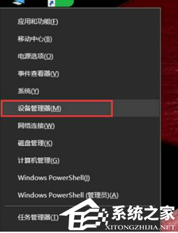 1. 右键左下角的开始菜单 ,选择“设备管理器”。