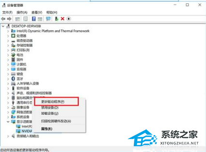 2. 右键需要安装驱动的设备,点击“更新驱动程序”。