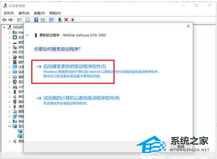 3. 选择“自动搜索更新的驱动程序软件”,之后等待下载更新即可。