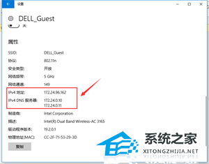 3. 检查无线网络适配器的IP地址,在无线属性中查看