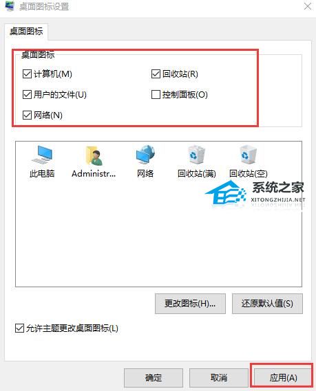 3. 勾选完成以后,点击“应用”,就能够恢复桌面了。