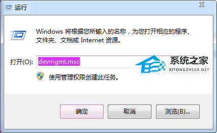 2. 打开后输入“devmgmt.msc”并按下回车。
