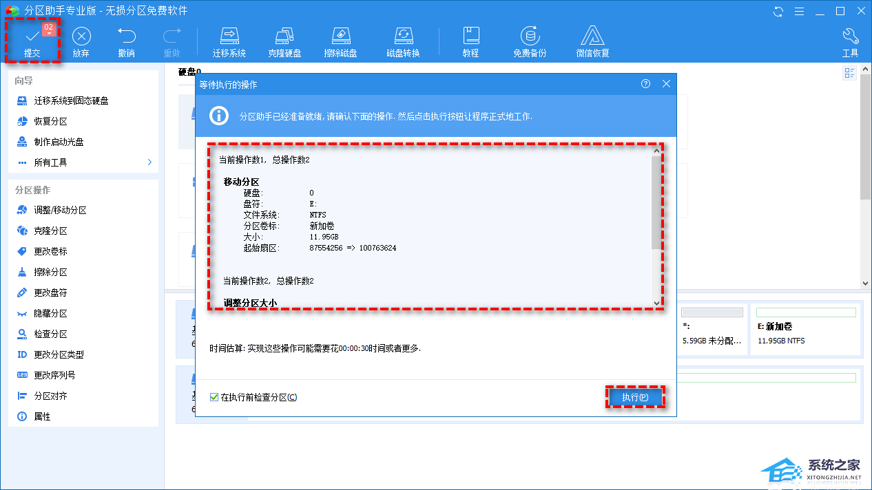 5. 点击界面左上角的“提交”,然后点击“执行”开始合并过程。