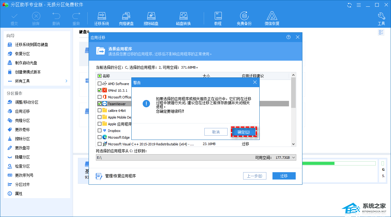 4. 确认您已关闭将从C盘移动到D盘的应用程序。然后单击确定。