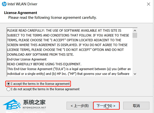 5. 选择我接受许可协议条款,点击下一步。