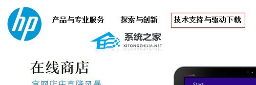 1. 打开惠普官方网站,点击“支持与驱动程序”。
