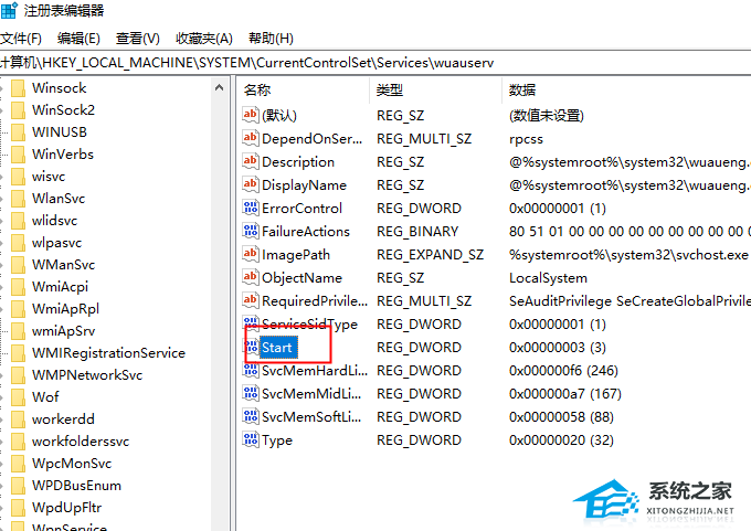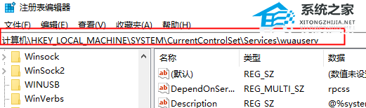 2. 定位HKEY_LOCAL_MACHINESYSTEMCurrentControlSetServiceswuauserv。