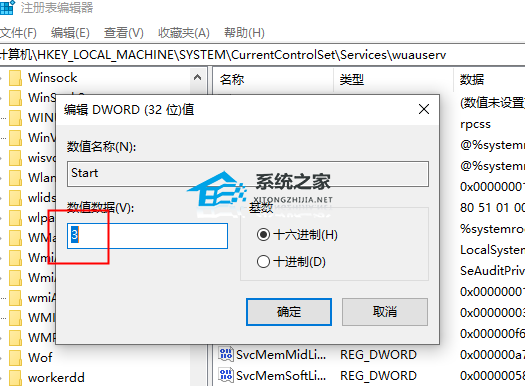 4. 将数值改为3,点击确定,看看服务是否恢复正常。