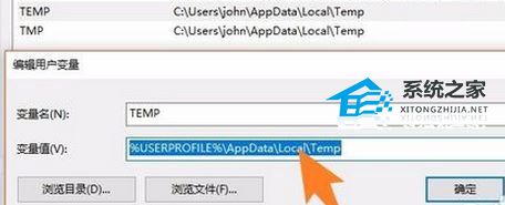 5. 最后在弹出的窗口界面中,将“变量值”设置为“%USERPROFILE%AppDataLocalTemp”,点击“确定”保存,随后将电脑重新启动即可。