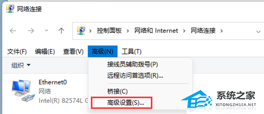 5. 菜单栏出现后,再点击【高级】,打开的下拉项中,选择【高级设置】;