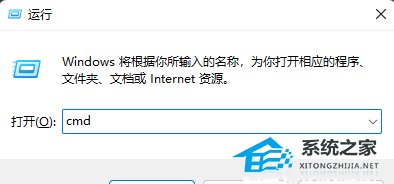 1. 打开运行(Win+R),输入【cmd】命令,按确定或回车,打开命令提示符窗口;