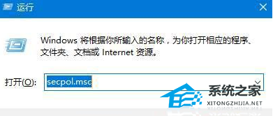 2. 在运行框中输入:secpol.msc 点击确定打开“本地安全策略”。