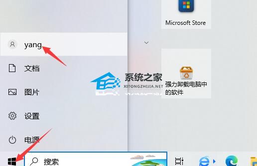 1. 首先点击开始的【微软徽标】→【当前用户头像】。