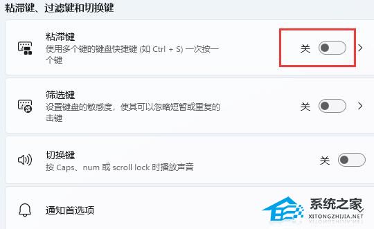 4. 最后将其中的粘滞键功能关闭就可以了。