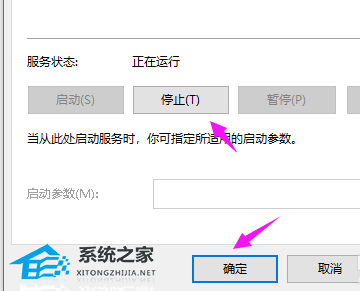 4. 接着点击“服务状态”中的“停止”按钮,点击“确定”。