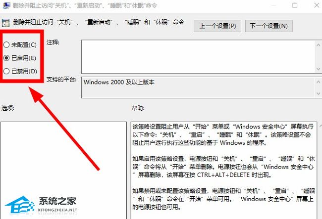 4. 在打开的窗口界面中,将“已启用”勾选上。