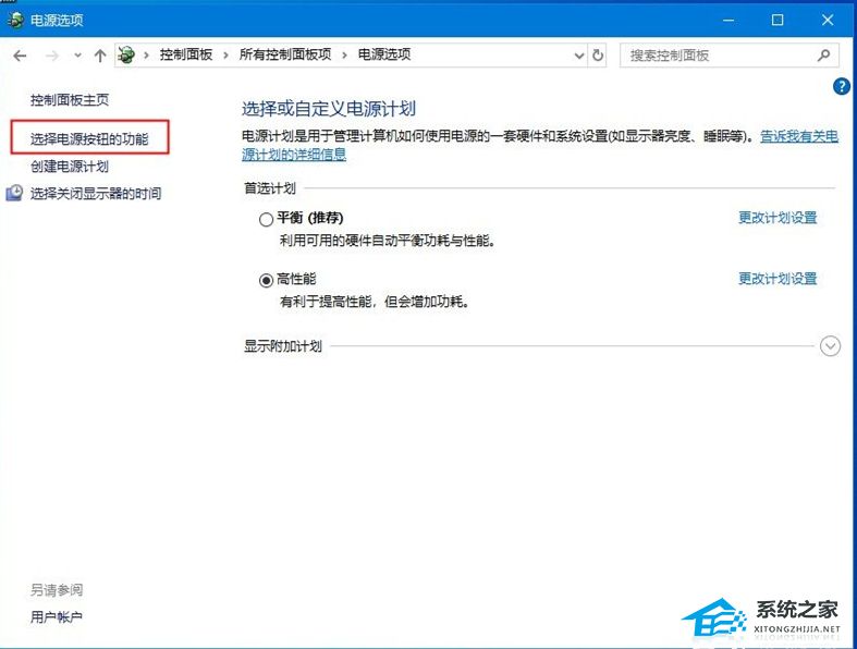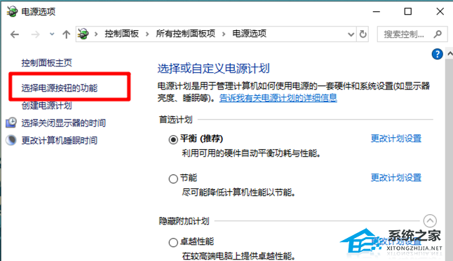 5. 电源选项窗口中,点击左侧【选择电源按钮的功能】;