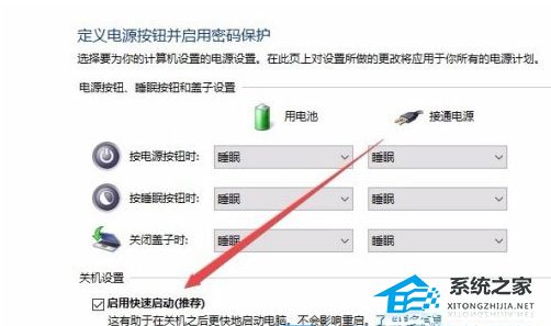 4. 这个时候可以看到下面的启用快速启动功能,把这个功能【取消勾选】就可以了。