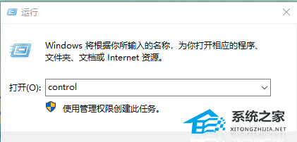 3. 设置完成后,打开运行(Win+R),并输入【control】命令,按【确定或回车】;