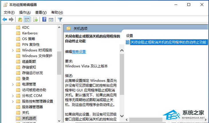 此策略设置指定 Windows 是否允许没有可见顶级窗口的控制台应用程序和 GUI 应用程序阻止或取消关机。默认情况下,如果此类应用程序无限期地试图取消或阻止关机,则这些应用程序会自动终止。
