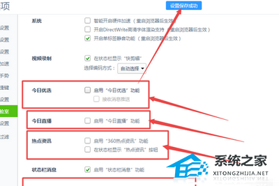6. 在打开的页面中将今日优选、今日直播、热点资讯、爆点资讯等选项前面框中的勾去掉并保存即可。