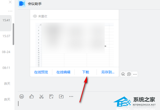 4. 打开会议助手,会显示该参会人员表格,点击当前弹出的窗口中的【下载】按钮进行下载表格。
