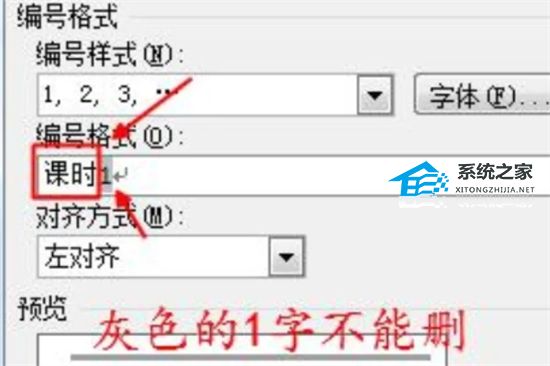 3. 鼠标光标移到“1.”数字的左边,输入你想要的文字(如:“课时”)。