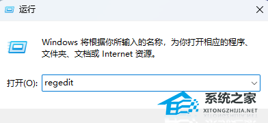 2. 运行窗口,输入【regedit】命令,按【确定或回车】打开注册表编辑器;