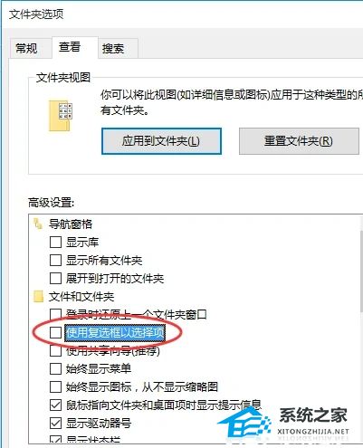 3. 将“使用复选框以选择项”前面的勾去掉,并点击“确定”按钮。
