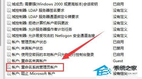 3. 随后找到右侧中的“账户:重命名系统管理员账户”双击打开。
